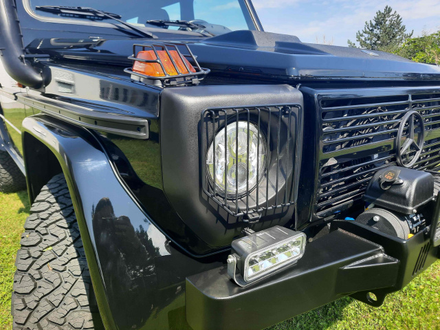 Auch in puncto Zusatzausstattung überzeugt das Fahrzeug auf ganzer Linie. Neben einem Schnorchel und der bereits erwähnten begehbaren Motorhaube verfügt der G300 Professional über eine Hornseilwinde mit robuster Stoßstange, Asteroth Schwerlast-Felgen (7J) mit All-Terrain-Bereifung, eine Anhängekupplung sowie eine moderne Multimedia-Ausstattung mit integriertem Radio, Lautsprechern und USB-Anschluss.